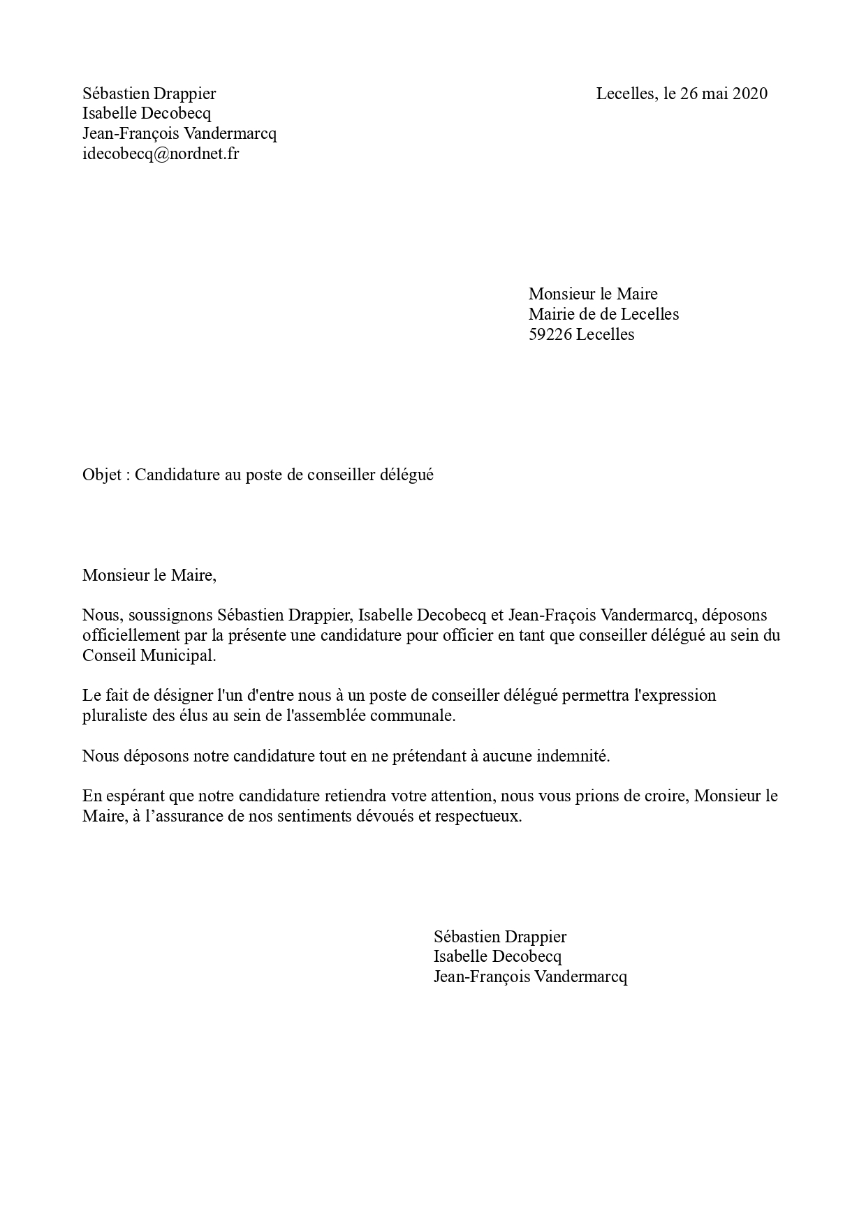 Candidature poste de conseiller délégué